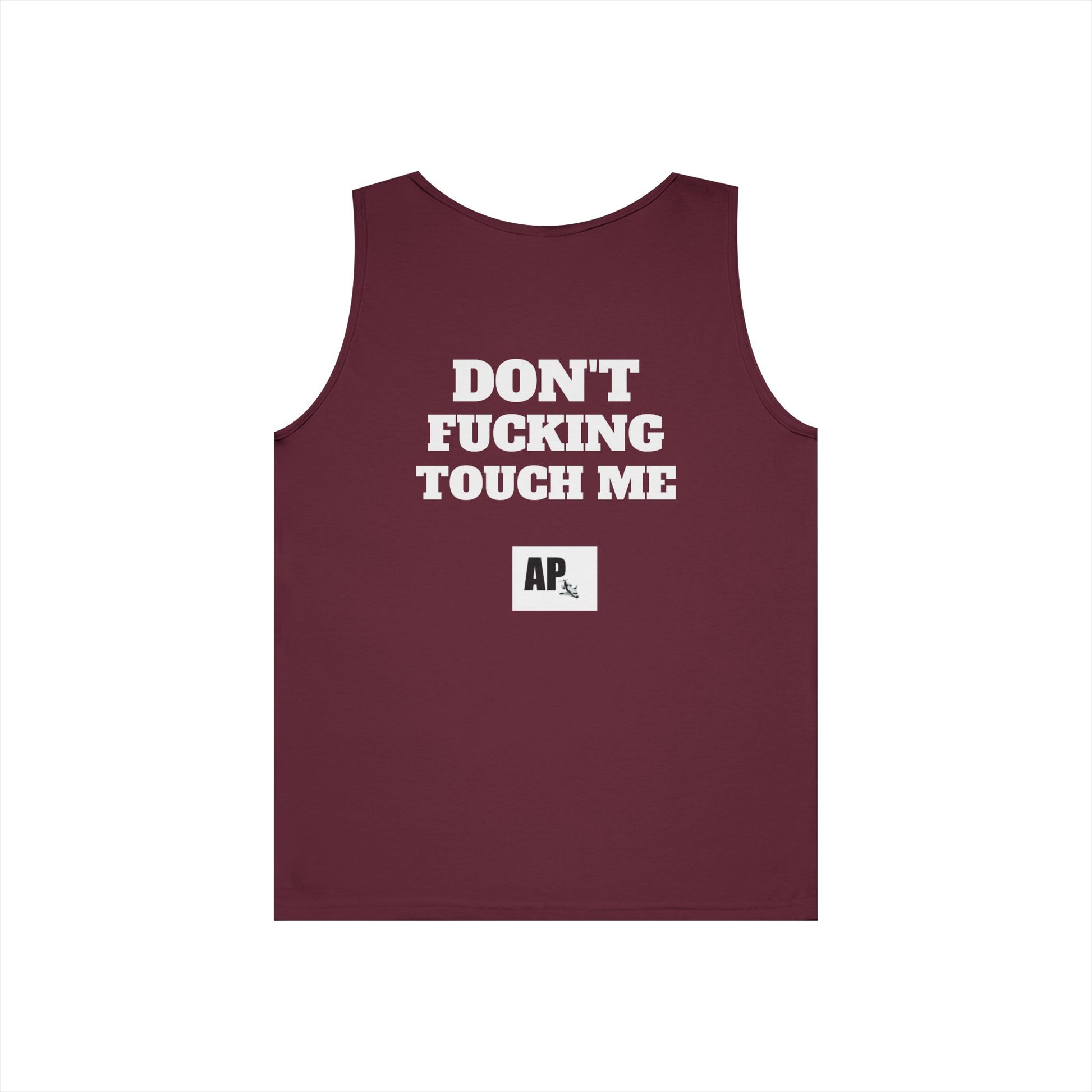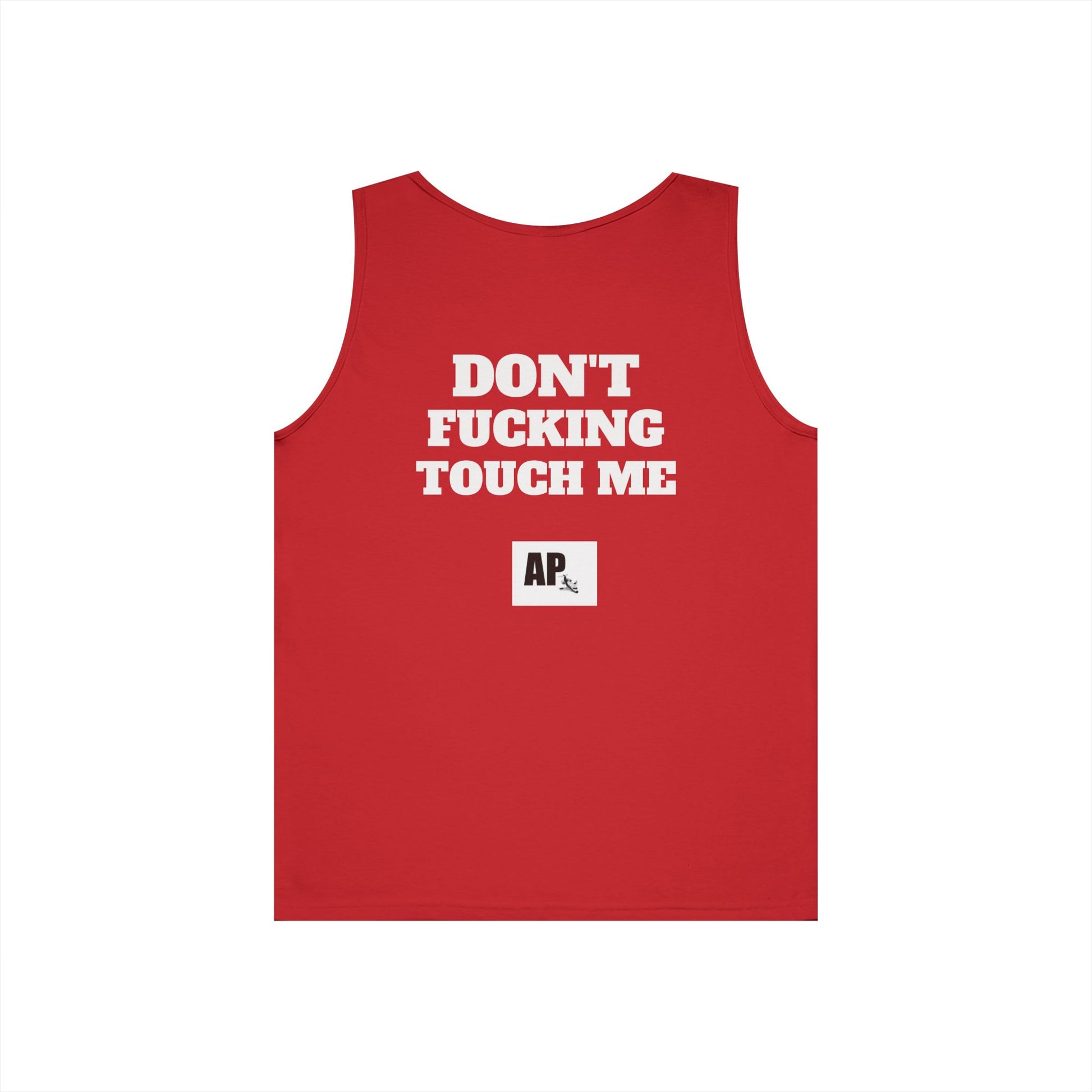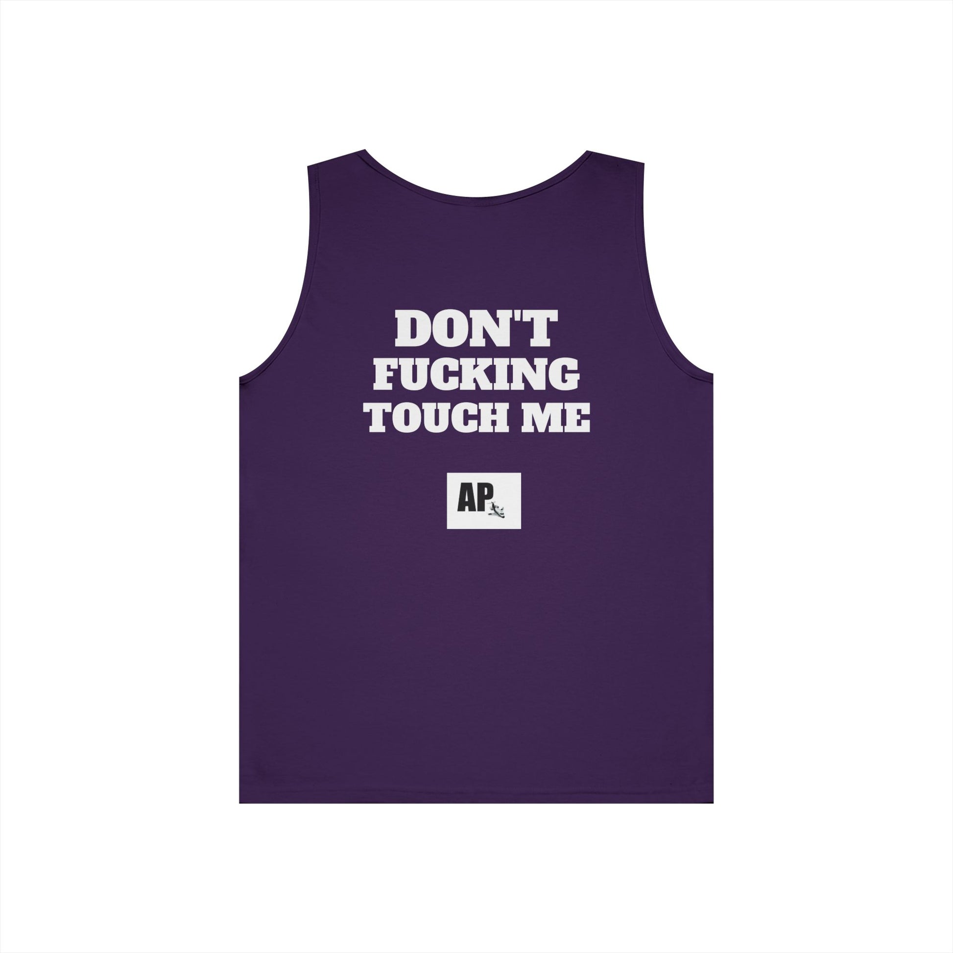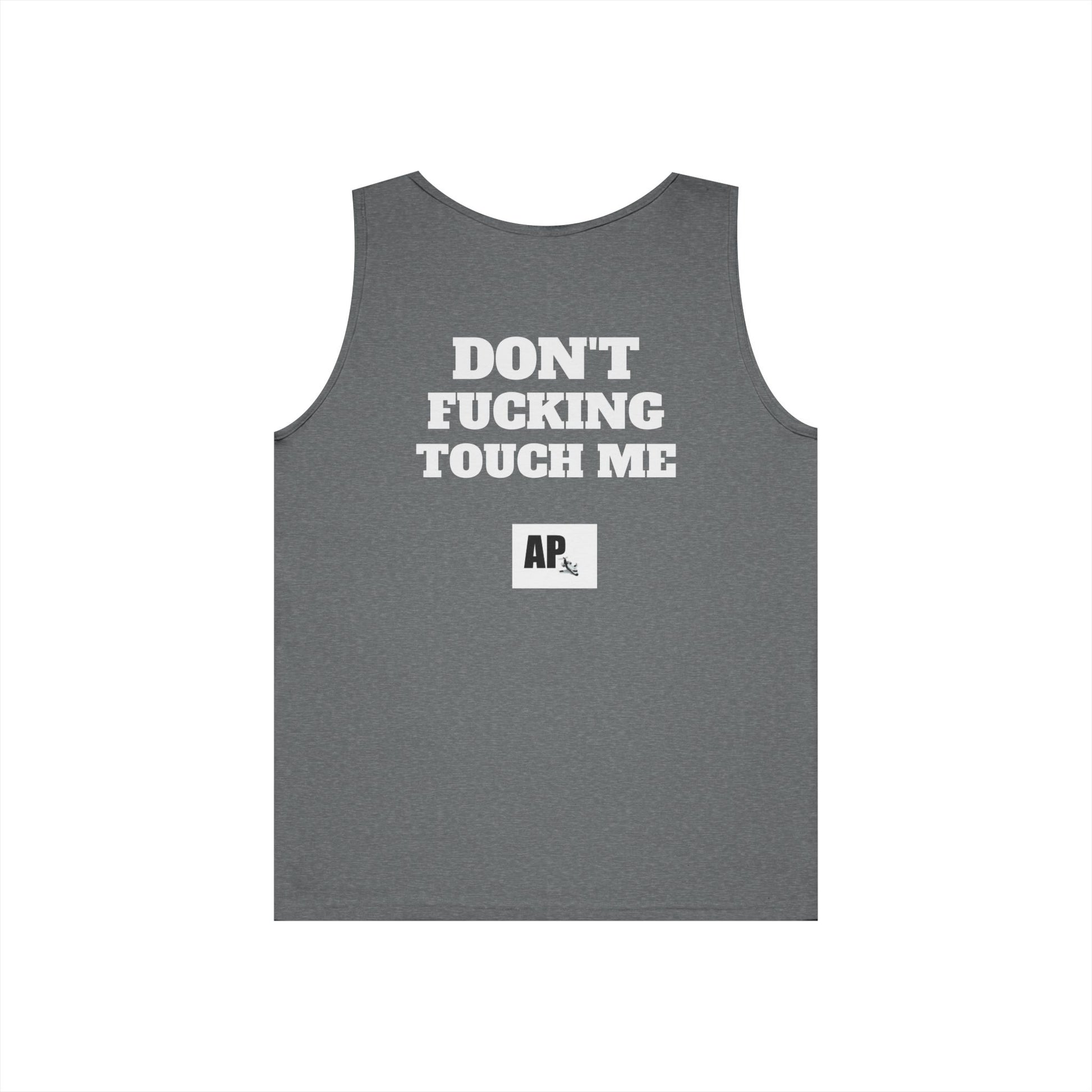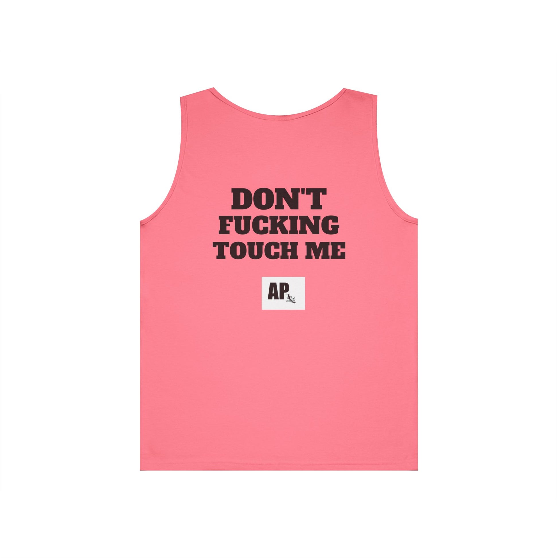 A bold, no-nonsense tank that speaks for you before you do. This medium-weight cotton tank sits with a classic, relaxed cut and a clean ribbed collar for easy on-off wear. The front carries a compact, distressed-stencil wordmark while the back delivers a block-letter statement in the same tough typographic style — concise, unapologetic, and made to stand up in crowded rooms, loud venues, or quiet mornings when you need a personal boundary. The fabric has enough heft to drape confidently, the double-stitched hem holds shape through washes, and the tear-away label keeps the neckline irritation-free. Wear it layered under a flannel for gritty street vibes, or on its own when you want the message to be unmistakable.